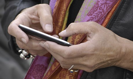 Flo, a telehealth growth, keeps people connected by text messages on a mobile phone. Photograph: Francis Dean/REX