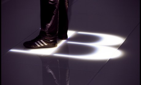 The Burberry ‘B’ lights up on the catwalk runway at the Chelsea College of Artwork and Design. Photograph: Felix Clay